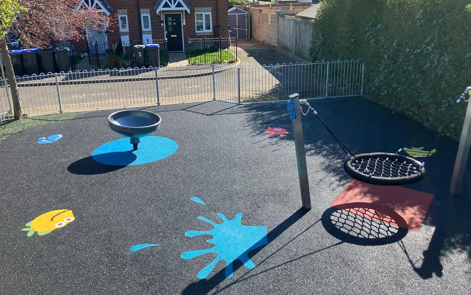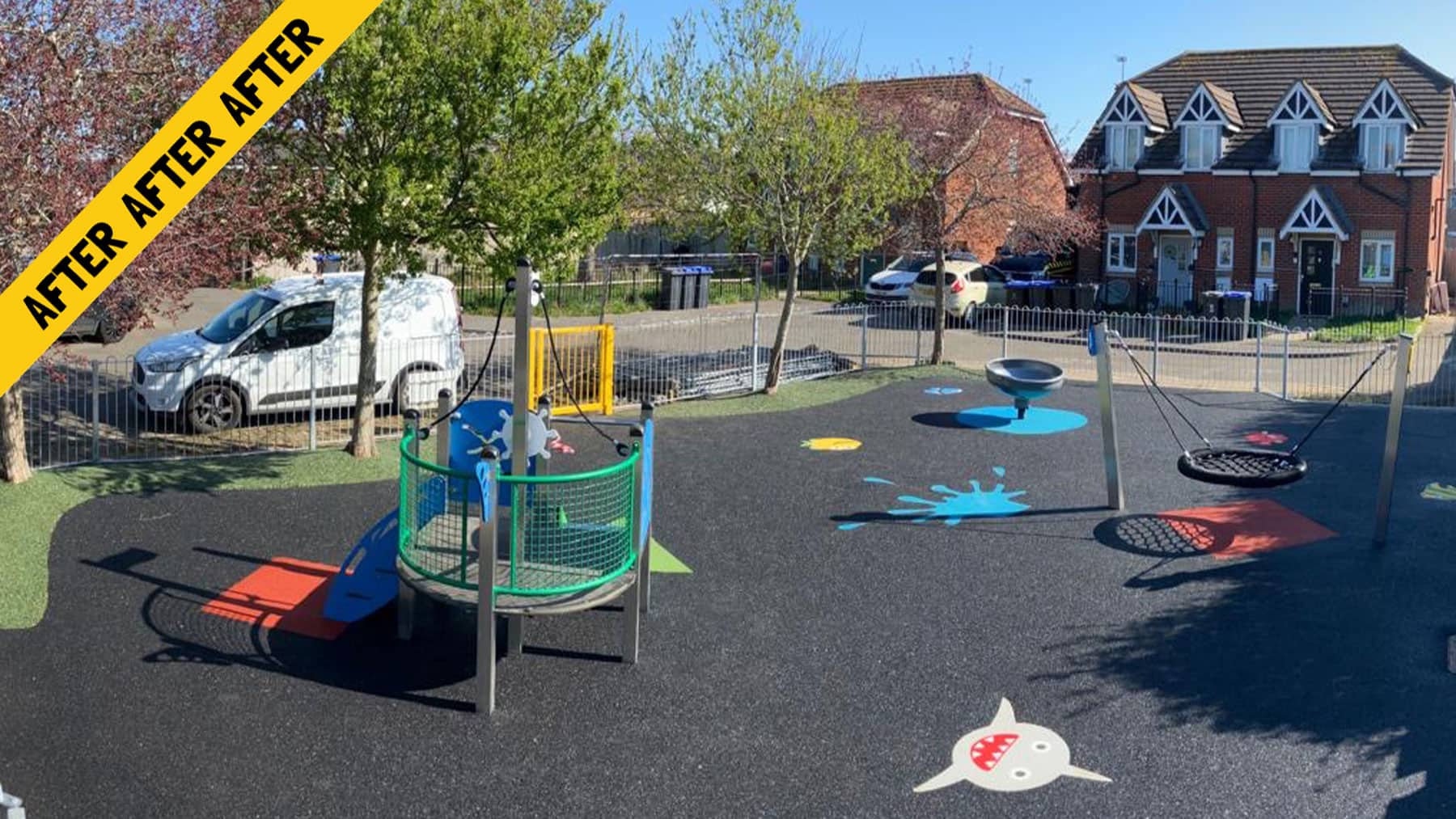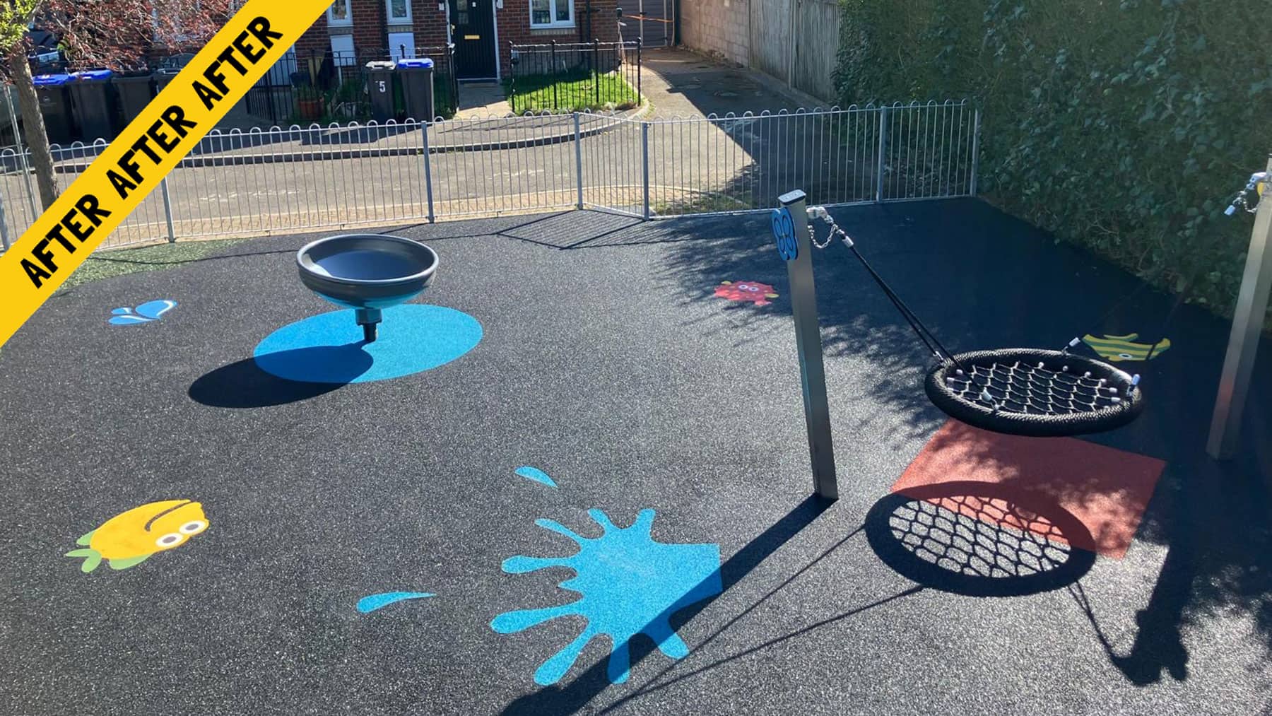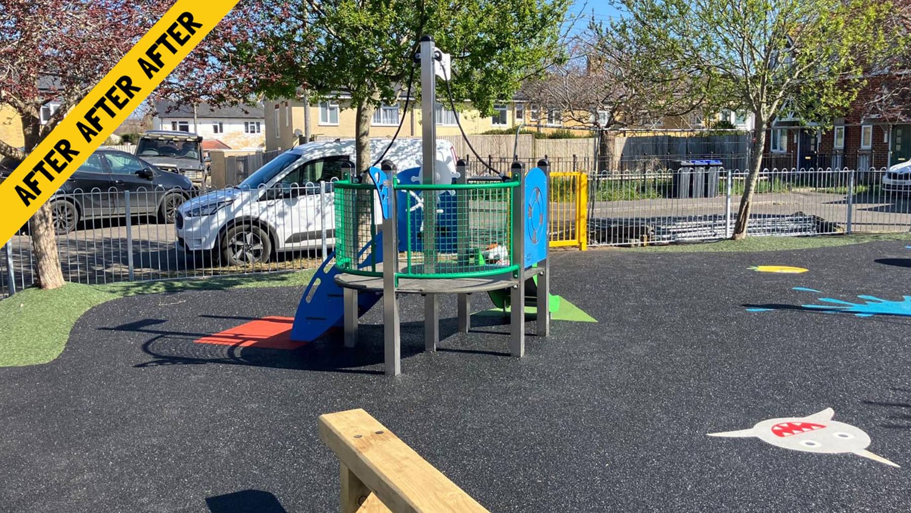 Our team was commissioned to deliver a full renovation of an existing play area at a site in the South East. The original space had become outdated and no longer met the needs of its users, with worn equipment and surfacing that limited both safety and play value. The objective of the project was to completely transform the area into a modern, safe, and engaging play space. This included the removal of all existing equipment and surfaces, followed by the installation of new play equipment, high-quality safety surfacing, and enhanced boundary features to create a secure and stimulating environment. Swipe for more The renovated play area was designed to offer a varied and inclusive play experience while meeting current safety standards. Key elements of the project included: Full Site Strip-Out: All existing play equipment and surfacing were carefully removed to allow for a complete redesign of the space. EPDM Safety Surfacing: New EPDM safety surfacing was installed across the entire play area, providing a durable, slip-resistant, and impact-absorbing surface. Bespoke Graphic Design: Custom-designed graphics were incorporated into the EPDM surfacing, adding colour, creativity, and visual interest while encouraging imaginative and interactive play. New Play Equipment: A range of new equipment was installed, including a spinning bowl, basket swing, and a multi-play unit, offering a balance of physical, social, and imaginative play opportunities. Seating Installation: New seating was added to provide comfortable resting and supervision areas for carers and visitors. Perimeter Fencing and Access Control: The play area was enclosed with new perimeter fencing and fitted with a self-closing easy-access gate, improving safety and security for all users. The completed space delivers a vibrant, modern play environment that is both visually striking and highly functional. Renovating the entire play area required careful coordination and planning to overcome several logistical challenges: Restricted Working Space: Due to limited space outside the play area, our site compound had to be established within the newly constructed play space itself. Works were carefully phased and sequenced to allow construction activities to progress efficiently while protecting completed areas from damage. Tight Site Access and Deliveries: Access to the site was restricted, making deliveries by large vehicles particularly challenging. A detailed traffic management plan was implemented to coordinate delivery times, vehicle movements, and unloading areas, ensuring materials arrived safely and without disruption to surrounding areas. Site Logistics Management: Managing the removal of existing equipment alongside the installation of new surfacing and play features required precise scheduling to maintain programme timescales and ensure a smooth transition between project stages. Quality and Safety Standards: All equipment and surfacing were installed in line with relevant safety standards, with close attention paid to fall zones, clearances, and final finishes. Design Coordination: The integration of bespoke EPDM graphics required detailed planning and accurate installation to achieve a high-quality finish that aligned with the overall play area layout and equipment positioning. The completed project successfully transformed the play area into a safe, attractive, and engaging destination for children of all ages. The combination of modern equipment, full-area safety surfacing, and bespoke graphics has significantly enhanced play value while providing peace of mind for carers and operators. The client was delighted with the finished result, particularly the visual impact of the custom EPDM design and the improved safety and usability of the space. The renovated play area now offers a long-lasting, high-quality facility that will be enjoyed for many years to come. Complete Play Area Renovation in the South East