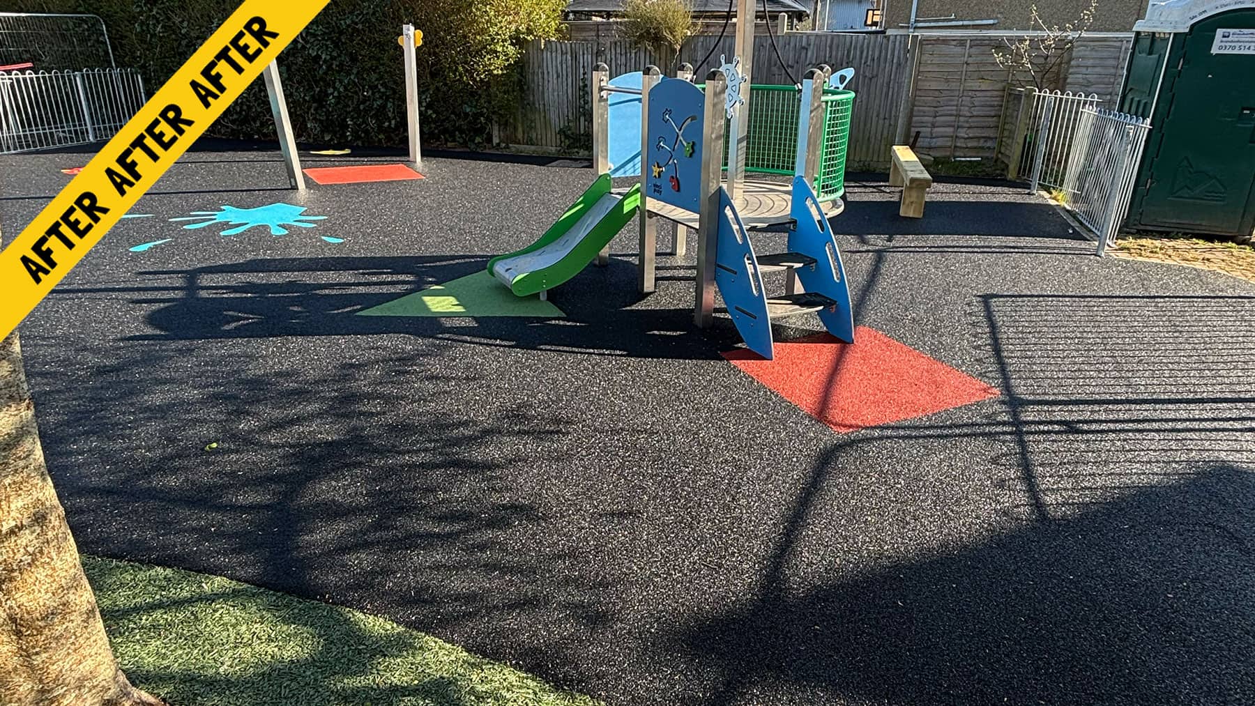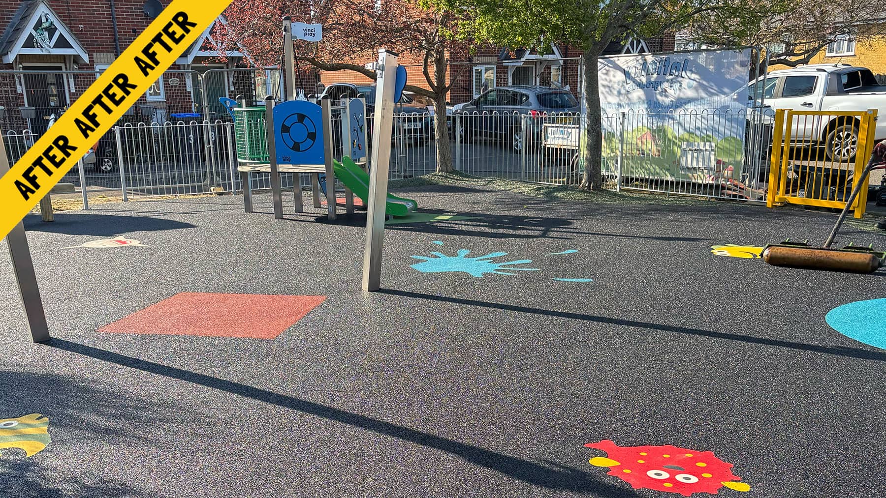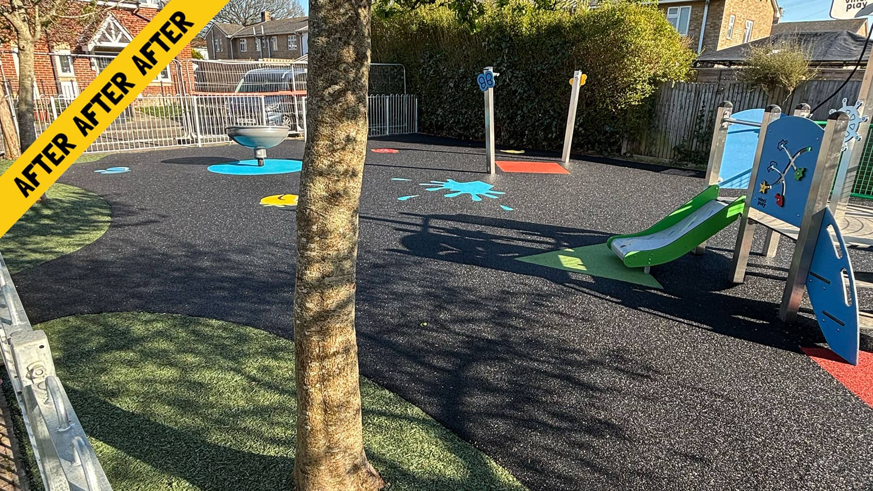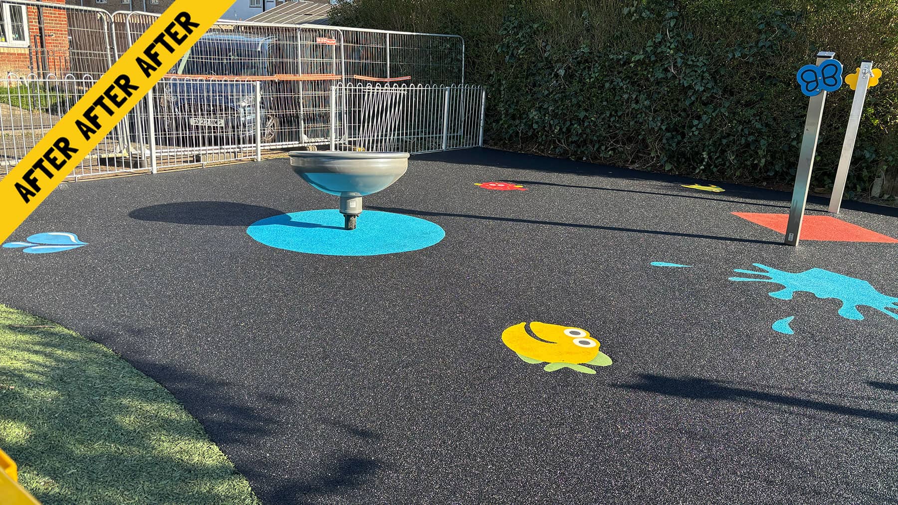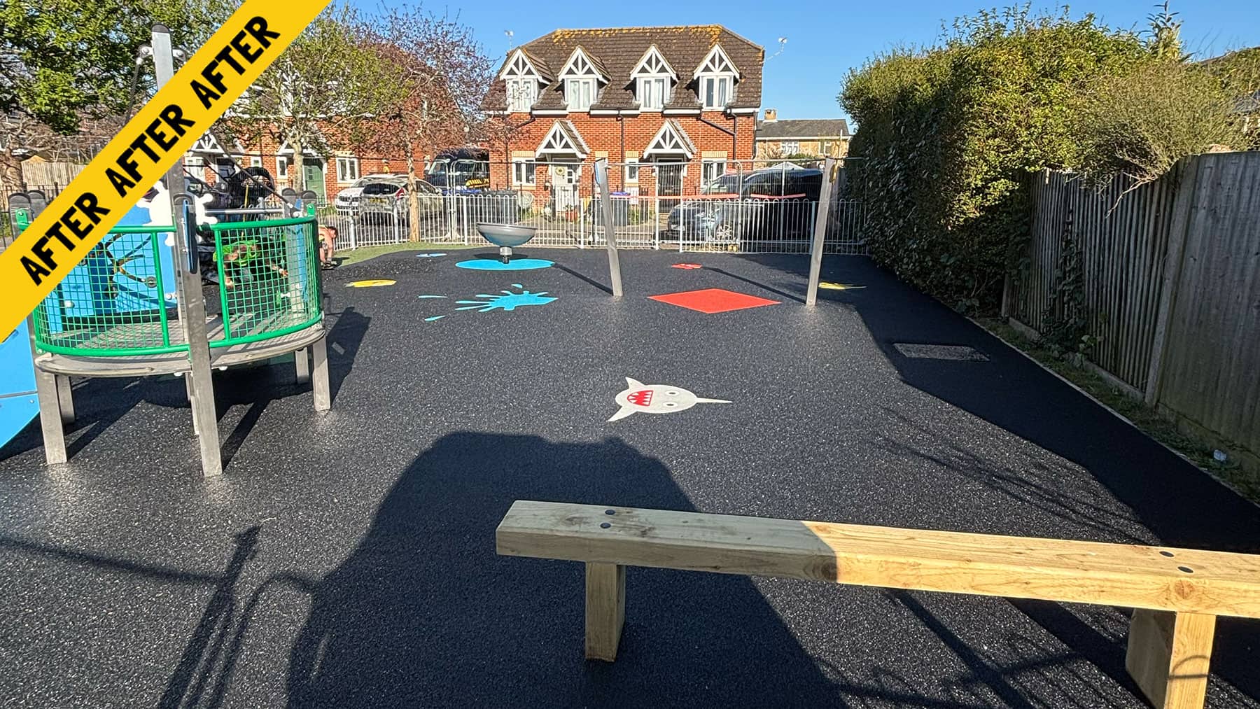 Our team was commissioned to deliver a full renovation of an existing play area at a site in the South East. The original space had become outdated and no longer met the needs of its users, with worn equipment and surfacing that limited both safety and play value. The objective of the project was to completely transform the area into a modern, safe, and engaging play space. This included the removal of all existing equipment and surfaces, followed by the installation of new play equipment, high-quality safety surfacing, and enhanced boundary features to create a secure and stimulating environment. Swipe for more The renovated play area was designed to offer a varied and inclusive play experience while meeting current safety standards. Key elements of the project included: Full Site Strip-Out: All existing play equipment and surfacing were carefully removed to allow for a complete redesign of the space. EPDM Safety Surfacing: New EPDM safety surfacing was installed across the entire play area, providing a durable, slip-resistant, and impact-absorbing surface. Bespoke Graphic Design: Custom-designed graphics were incorporated into the EPDM surfacing, adding colour, creativity, and visual interest while encouraging imaginative and interactive play. New Play Equipment: A range of new equipment was installed, including a spinning bowl, basket swing, and a multi-play unit, offering a balance of physical, social, and imaginative play opportunities. Seating Installation: New seating was added to provide comfortable resting and supervision areas for carers and visitors. Perimeter Fencing and Access Control: The play area was enclosed with new perimeter fencing and fitted with a self-closing easy-access gate, improving safety and security for all users. The completed space delivers a vibrant, modern play environment that is both visually striking and highly functional. Renovating the entire play area required careful coordination and planning to overcome several logistical challenges: Restricted Working Space: Due to limited space outside the play area, our site compound had to be established within the newly constructed play space itself. Works were carefully phased and sequenced to allow construction activities to progress efficiently while protecting completed areas from damage. Tight Site Access and Deliveries: Access to the site was restricted, making deliveries by large vehicles particularly challenging. A detailed traffic management plan was implemented to coordinate delivery times, vehicle movements, and unloading areas, ensuring materials arrived safely and without disruption to surrounding areas. Site Logistics Management: Managing the removal of existing equipment alongside the installation of new surfacing and play features required precise scheduling to maintain programme timescales and ensure a smooth transition between project stages. Quality and Safety Standards: All equipment and surfacing were installed in line with relevant safety standards, with close attention paid to fall zones, clearances, and final finishes. Design Coordination: The integration of bespoke EPDM graphics required detailed planning and accurate installation to achieve a high-quality finish that aligned with the overall play area layout and equipment positioning. The completed project successfully transformed the play area into a safe, attractive, and engaging destination for children of all ages. The combination of modern equipment, full-area safety surfacing, and bespoke graphics has significantly enhanced play value while providing peace of mind for carers and operators. The client was delighted with the finished result, particularly the visual impact of the custom EPDM design and the improved safety and usability of the space. The renovated play area now offers a long-lasting, high-quality facility that will be enjoyed for many years to come. Complete Play Area Renovation in the South East