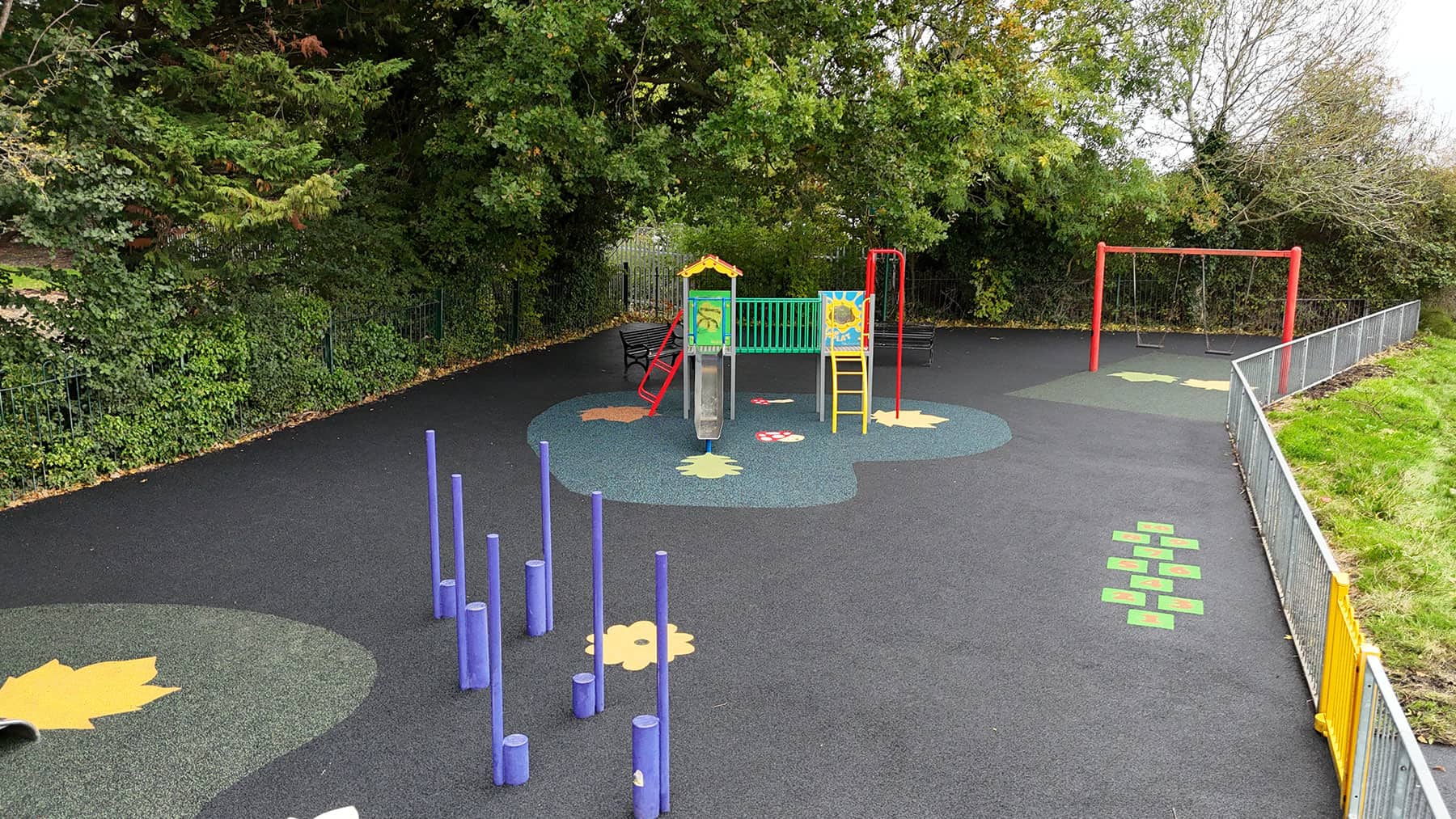 Our team was commissioned to upgrade an existing play area in Wokingham, enhancing its play value while maintaining cost efficiency for the client. The area contained a mix of existing equipment, some of which was in good condition, alongside a unit located elsewhere in Wokingham that the client wished to reuse. The objective of the project was to rejuvenate the play space by relocating the existing unit, installing new equipment, and preserving usable elements of the original area. Creative safety surfacing was incorporated to deliver a transformed, engaging play area while reducing overall costs. Swipe for more The project delivered a vibrant, multi-functional play area that blended new, existing, and relocated elements to maximise play value. Key aspects of the works included Relocation of the existing unit: A play unit was carefully removed from another play area elsewhere in Wokingham and reinstalled in the upgraded area using a bespoke steel foot solution, ensuring stability and compliance with safety standards New equipment installation: A range of brand-new play items was added, enhancing the variety of play opportunities and creating additional physical, social, and imaginative challenges for children Integration of existing equipment: Select elements of the original play area were retained and restored, providing cost savings while maintaining familiar features for regular users Full-site surfacing with bespoke graphics: The entire play area was resurfaced with safety surfacing incorporating bespoke creative graphics. This added visual interest, encouraged imaginative play, and made the space feel completely refreshed Cost-effective transformation: By combining restored equipment, the relocated unit, and new items, the project delivered a high-value upgrade that maximised play potential without the need for full replacement of all equipment The result is a visually striking, safe, and engaging play area that feels entirely new while being cost-efficient for the client. This project presented several practical and logistical challenges Unit relocation and stability: Moving a play unit from a different site required careful planning and the design and installation of a bespoke steel footing to ensure long-term stability and safety compliance Integrating new, existing, and relocated equipment: Careful planning and layout design ensured that all equipment worked together seamlessly, maintaining safety clearances, fall zones, and an intuitive play flow Maximising play value in a limited space: The creative full-area surfacing allowed us to maximise engagement and play opportunities, giving the impression of an entirely new play area while keeping some existing elements Efficient project delivery: Works were coordinated to minimise disruption and ensure all installation phases were carried out safely and efficiently, delivering a high-quality result on time and within budget The completed project successfully transformed the Wokingham play area into a vibrant, imaginative, and safe environment. By combining new items, restored existing equipment, and a relocated unit from elsewhere in Wokingham and enhancing the space with bespoke graphics, the area feels entirely renewed while remaining cost-effective. The client was extremely pleased with the result, particularly appreciating the creative surfacing, the careful integration of all equipment, and the balance of new and restored items that maximised play value without unnecessary expenditure Play Area Upgrade and Equipment Relocation in Wokingham