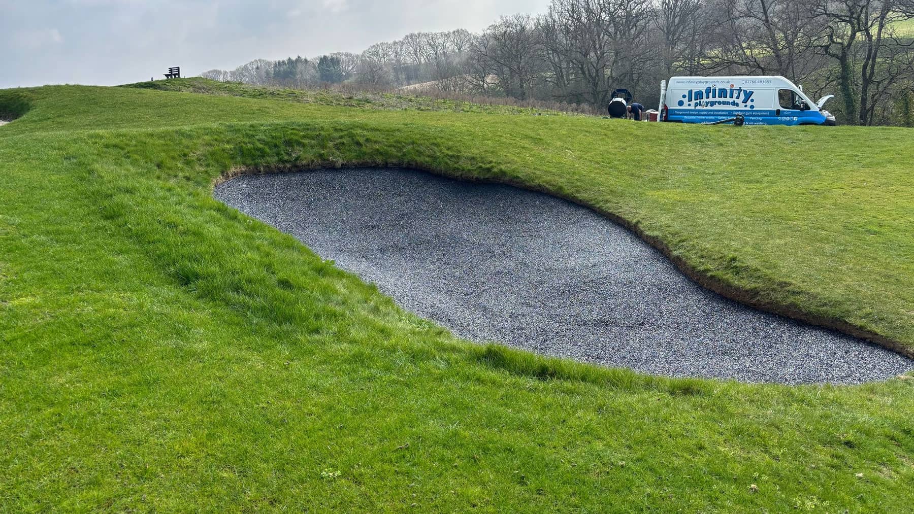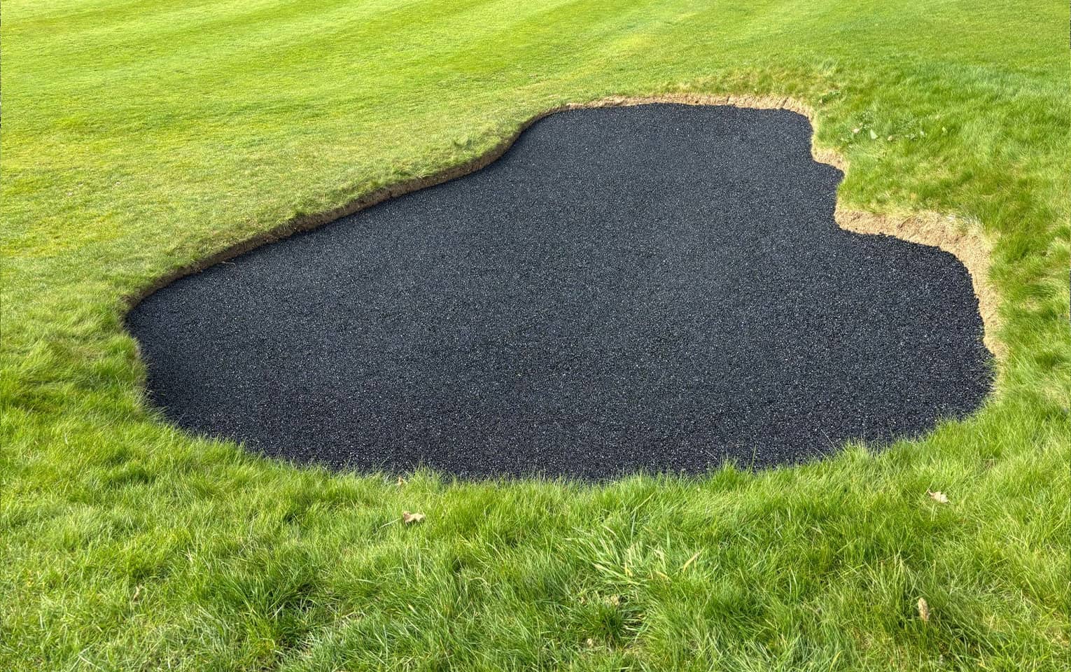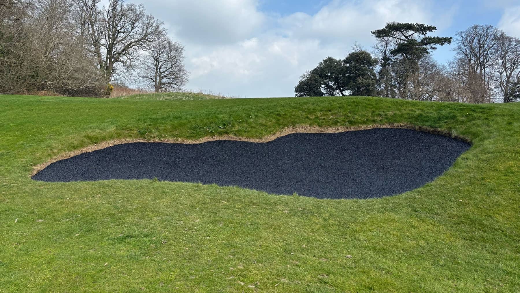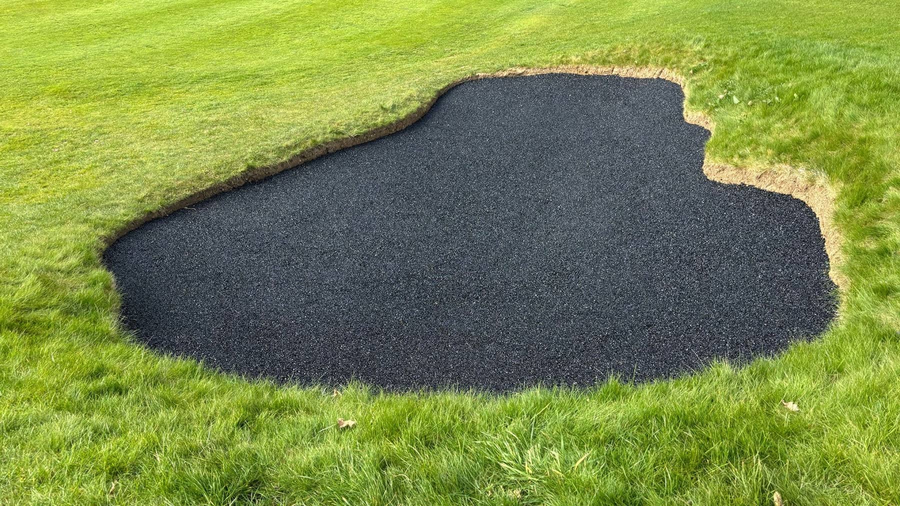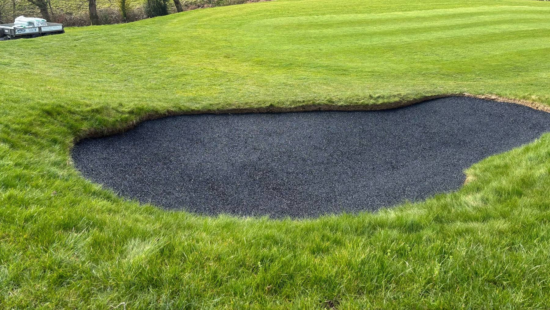 Our team was engaged by a well-established local golf course to upgrade several of its bunkers using our advanced rubberised bunker lining solution. The course had been experiencing ongoing issues with sand contamination, poor drainage, and bunker bases breaking down under regular play, resulting in increased maintenance demands and inconsistent playability. The objective of the project was to deliver a long-term solution that improved bunker performance and drainage while protecting the surrounding course. All works needed to be completed with no damage to the turf or playing surfaces and minimal disruption to golfers. Swipe for more The project involved the installation of our specialist rubberised bunker lining system, designed to enhance durability and reduce ongoing maintenance. Key elements of the works included: Careful Bunker Preparation: Existing sand was removed and retained where possible, and the bunker bases were prepared to receive the liner without disturbing surrounding turf or drainage infrastructure. Rubberised Bunker Lining Installation: The bunker bases and faces were lined with a permeable rubber system, forming a durable barrier that prevents contamination from underlying soils while maintaining the traditional appearance of the bunkers. Improved Drainage Performance: The open-textured rubber lining allows water to pass freely through the bunker profile, enabling rapid drainage and reducing the risk of standing water after heavy rainfall. Resistance to Wear and Impact: The flexible yet robust lining resists damage from deep club strikes and helps prevent sand movement and wash-down, ensuring consistent bunker conditions over time. Sustainability was a key advantage of the chosen bunker lining solution: Reduced Material Waste: By preventing contamination from below, the rubberised liner significantly extends the lifespan of bunker sand, reducing the frequency of sand replacement and disposal. Lower Maintenance Requirements: Improved drainage and structural stability reduce the need for repeated repairs, reshaping, and mechanical intervention, resulting in lower fuel usage and reduced labour demands. Efficient Water Management: Faster drainage minimises water retention in bunkers, helping the course recover more quickly after rainfall and reducing reliance on remedial works that can impact surrounding turf and ecosystems. Long-Lasting Solution: The durability of the rubber lining means fewer future interventions, supporting a more sustainable, low-impact approach to bunker management over the long term. Protecting the Course: All access routes, materials handling, and installation methods were carefully planned to ensure zero damage to fairways, greens, and surrounding turf. Working Within an Active Golf Environment: The works were programmed around play to minimise disruption while maintaining high standards of workmanship and safety. Performance Under Play: The selected lining system was specified to cope with frequent play and deep swings, ensuring consistent performance without compromising bunker aesthetics. The completed project has delivered a durable, high-performance bunker solution that improves playability, drainage, and long-term sustainability. The golf course now benefits from bunkers that remain consistent in all weather conditions, require less ongoing maintenance, and retain their quality for longer. The client was extremely pleased with both the finished result and the care taken to protect the course throughout the works. The rubberised bunker lining provides a future-proof, environmentally conscious solution that will serve the course and its members for many years to come. Rubberised Bunker Lining Installation at Local Golf Course